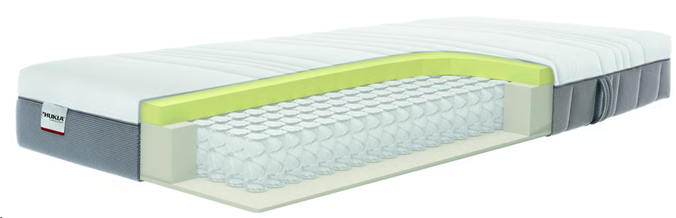 Nosná část: 7-zónové jádro s taštičkovými pružinami s 500 pružinami/2 m², v Ø 65 mm pro dobrou bodovou elasticitu