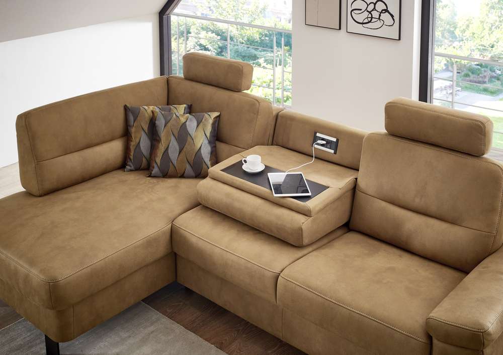 Tato speciální funkce sedačky, nabízí skrytou odkládací desku a zabudované zásuvky USB a 230V pro nabíjení mobilních zařízení a třeba i napájení notebooku.