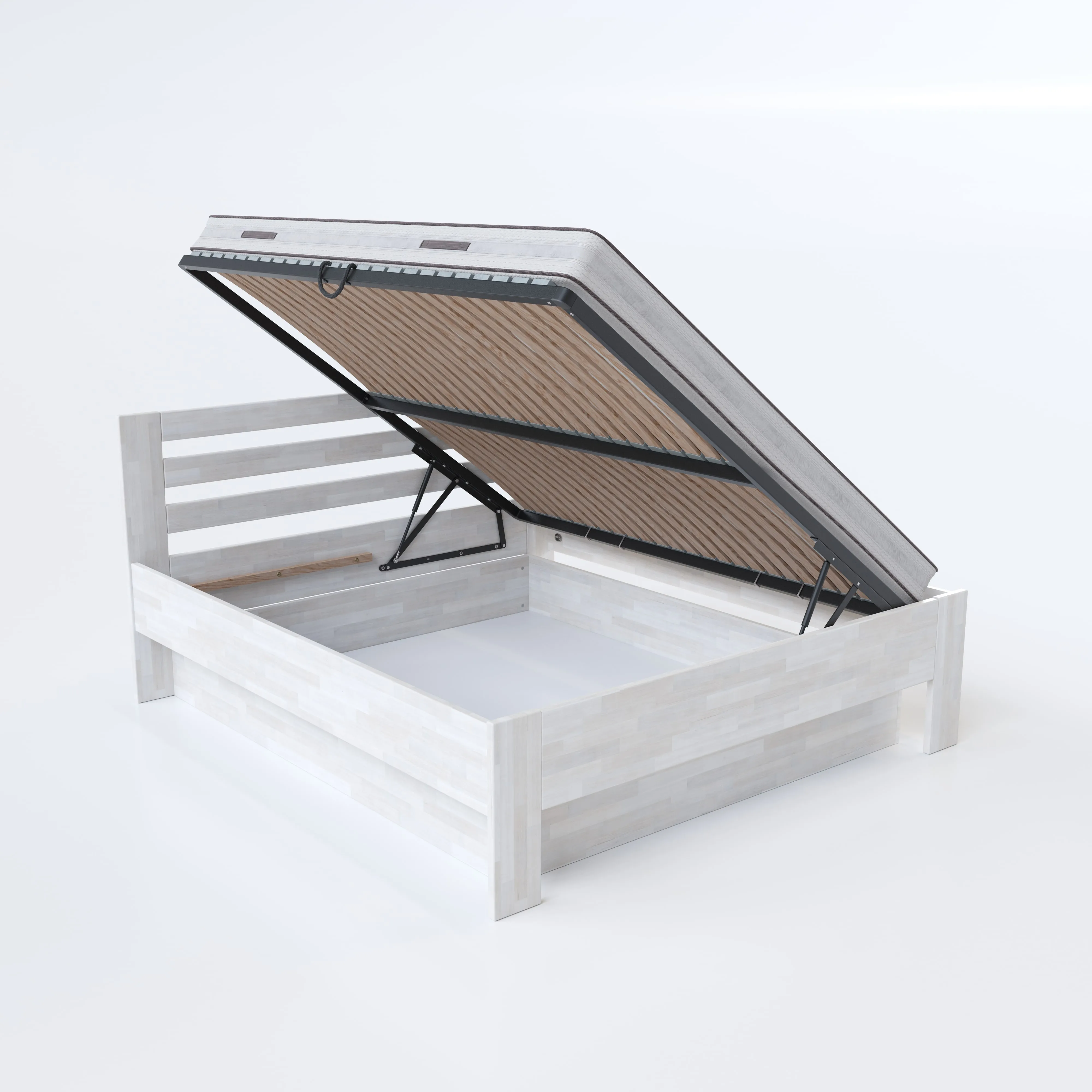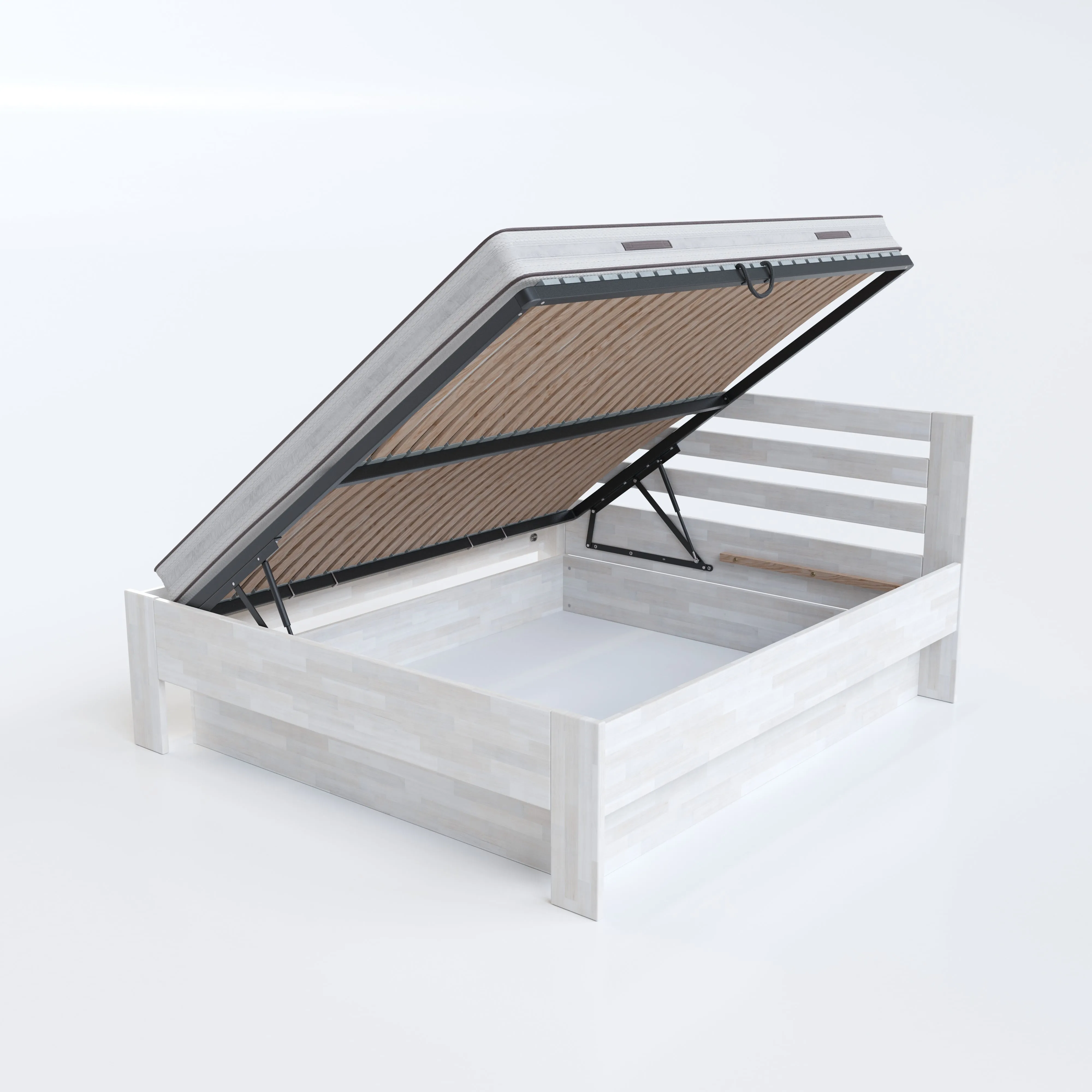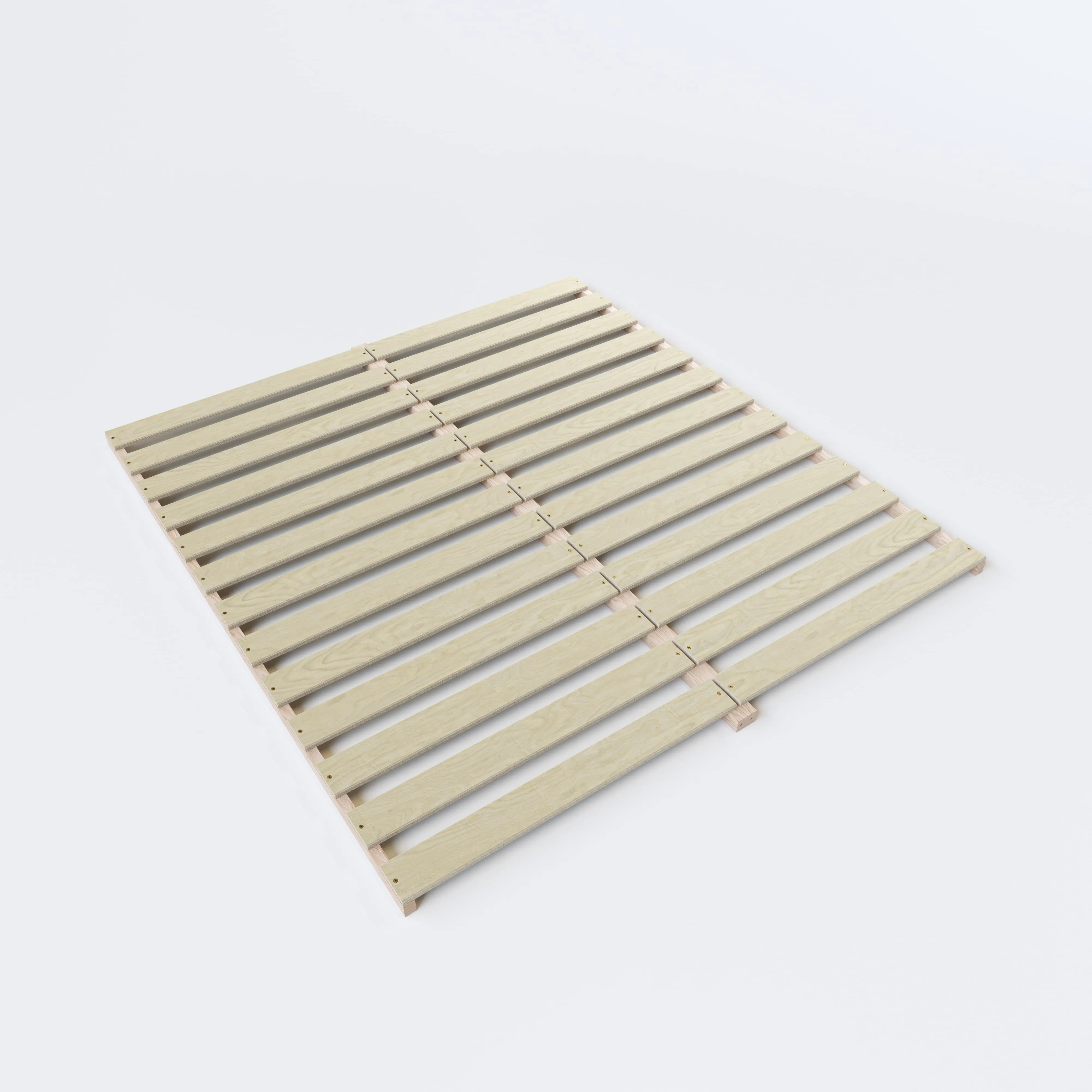 Materiál roštu: překližka tl. 20 mm, každá jednotlivá lamela roštu je pevně přišroubována vrutem k boční a středové lati postele a má nosnost 200 kg