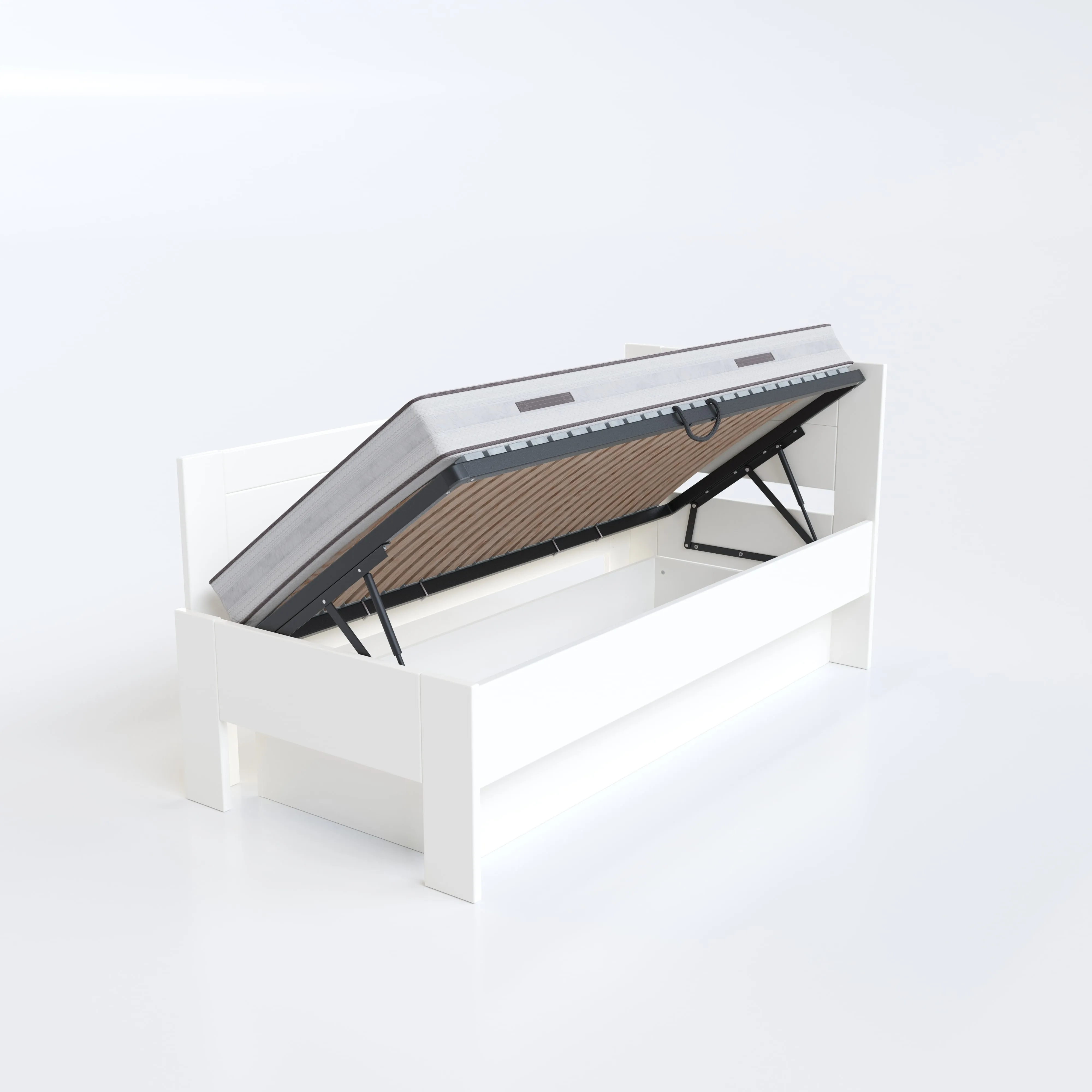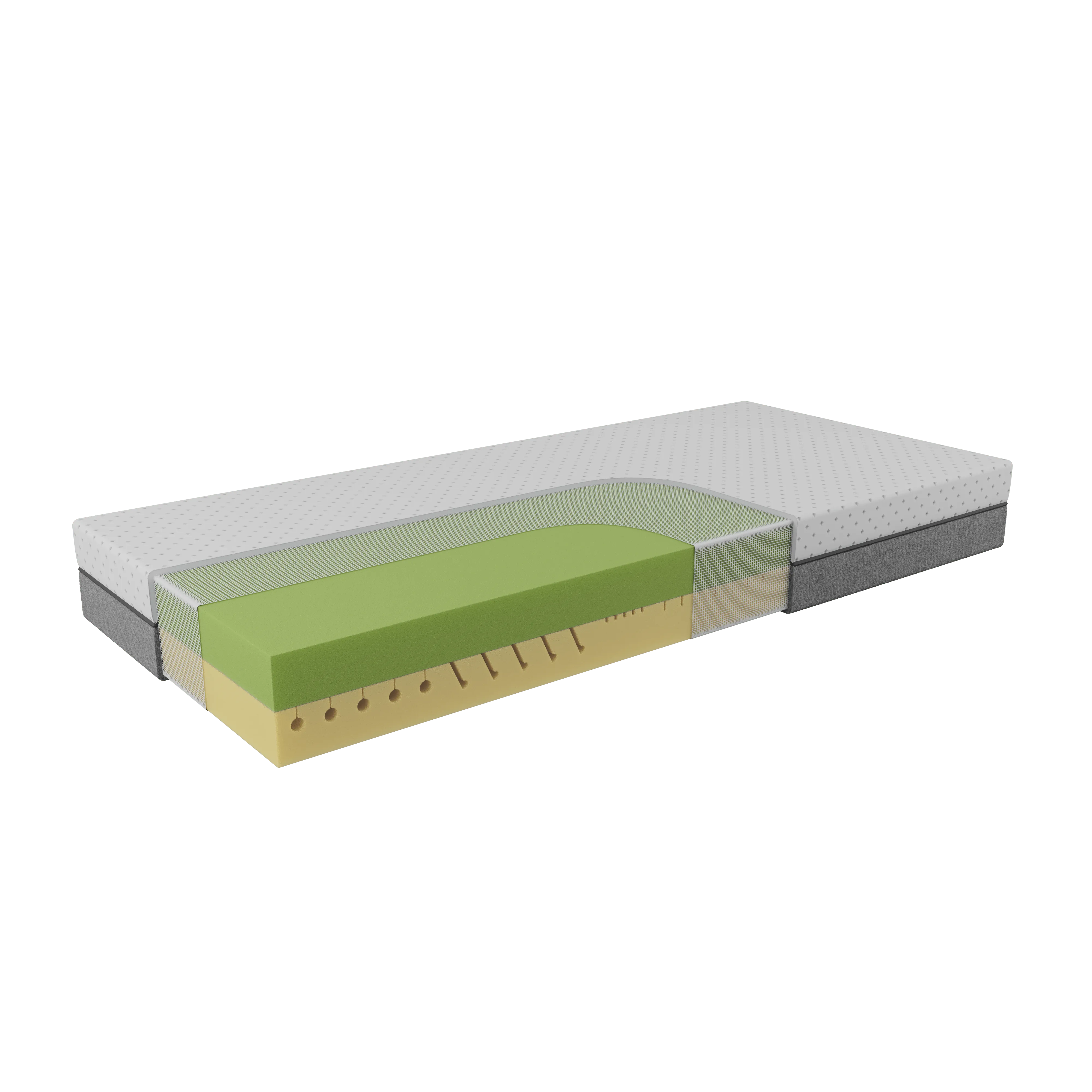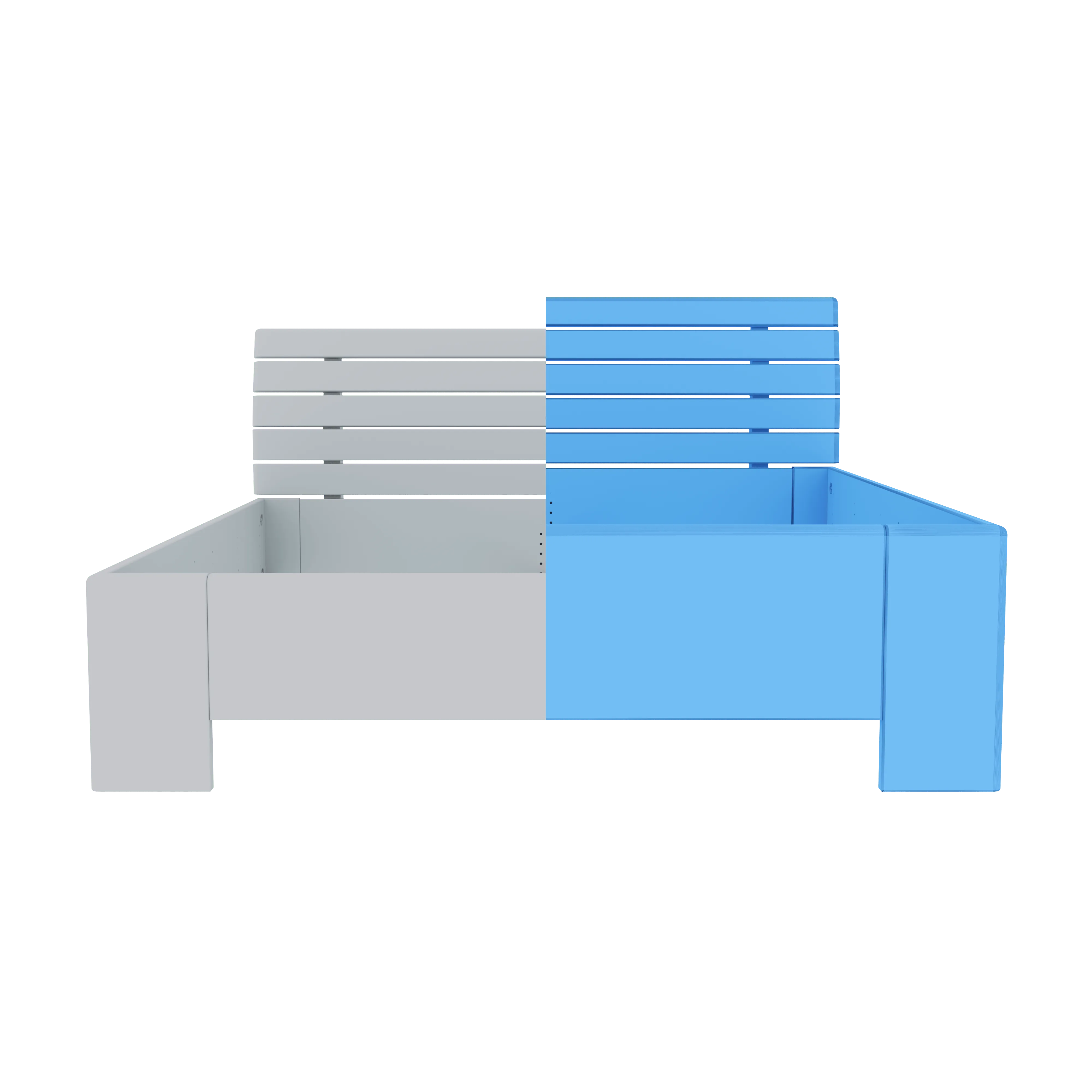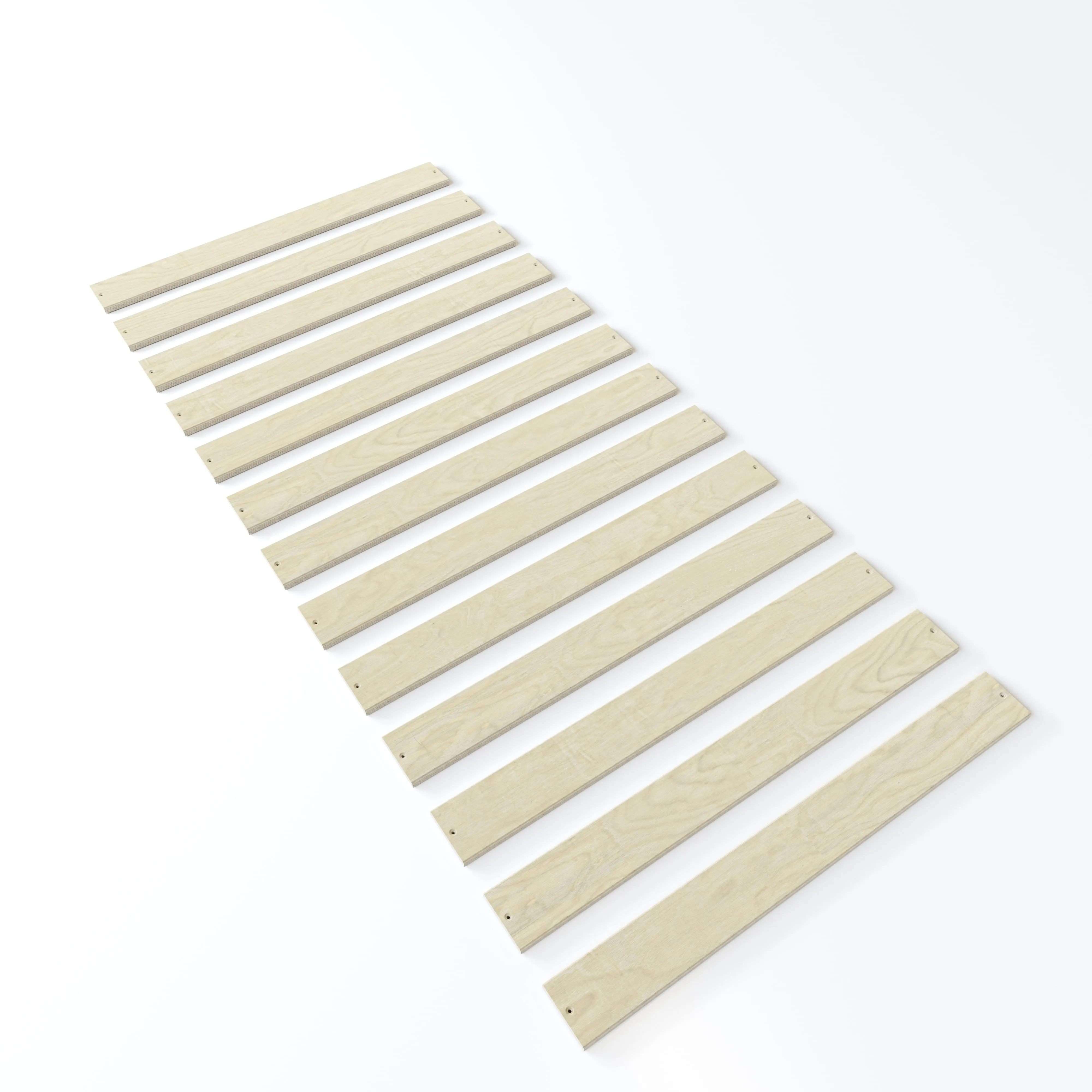 Materiál roštu: překližka tl. 20 mm, každá jednotlivá lamela roštu je pevně přišroubována vrutem k boční a středové lati postele a má nosnost 200 kg